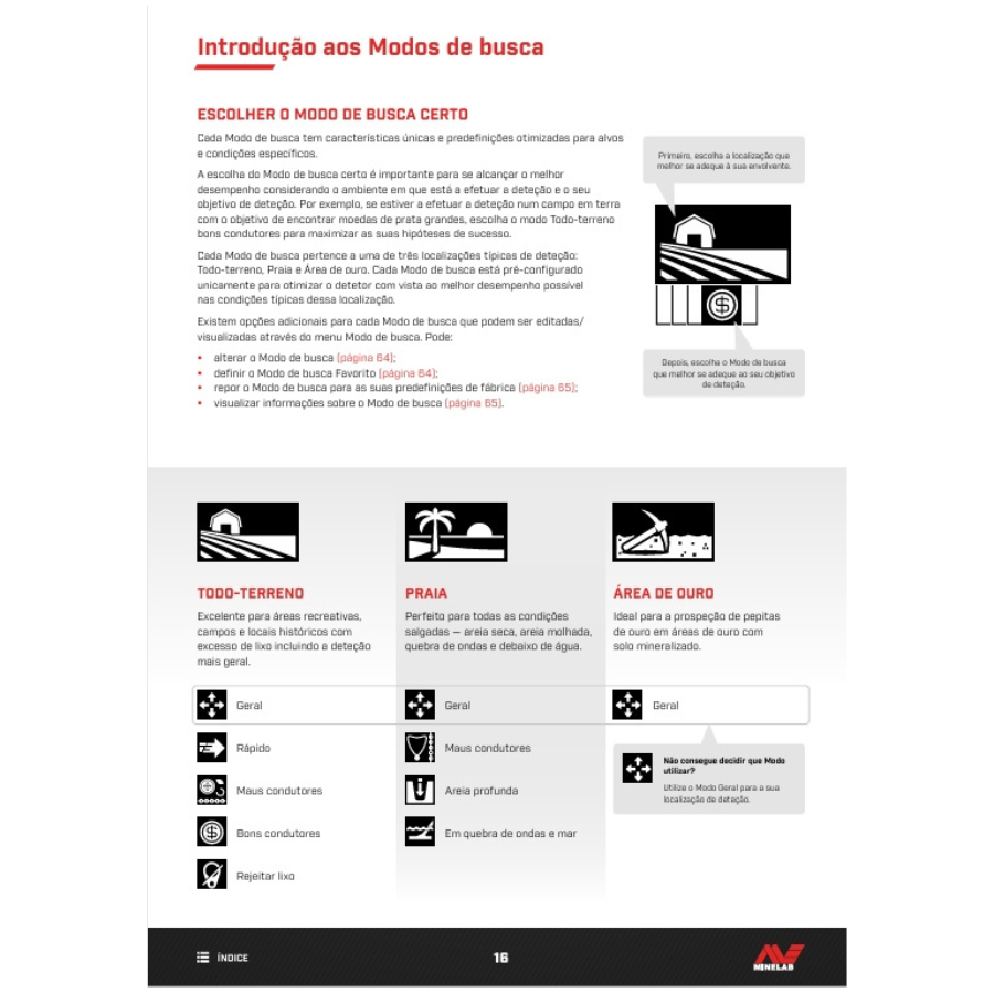 Por outro lado, em ambientes controlados como praias de areia limpa, esse modo pode acelerar a varredura ao ignorar detritos metálicos comuns. Dessa forma, o detectorista ganha eficiência sem sacrificar a qualidade dos sinais relevantes.